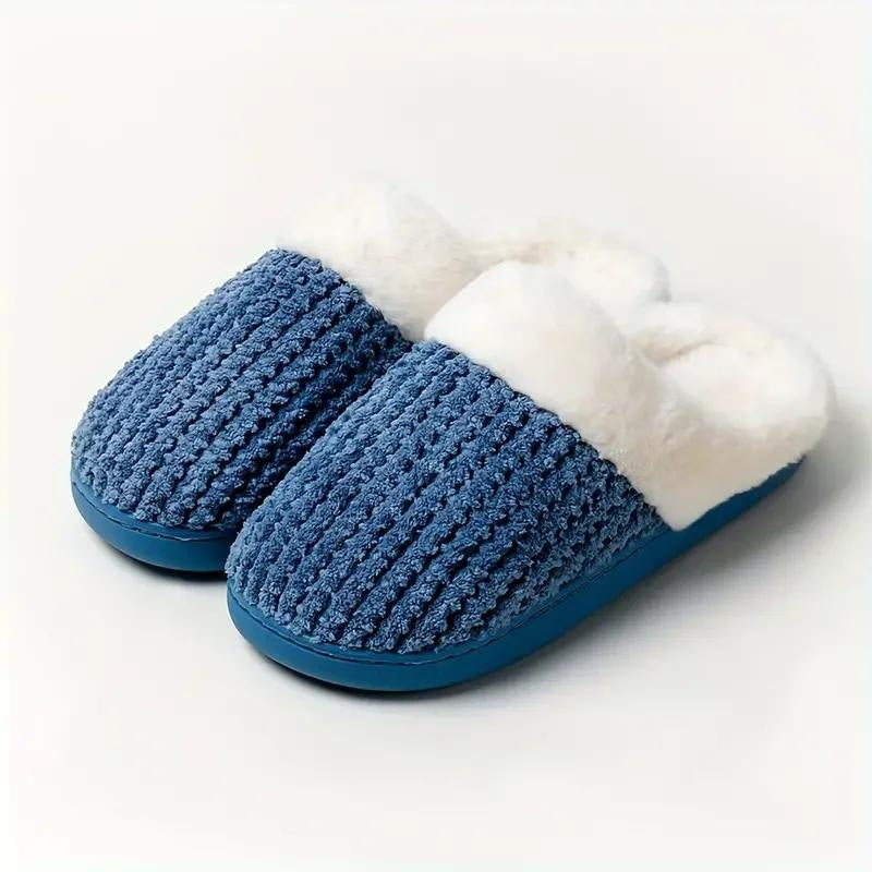 La doublure en fausse fourrure blanche ajoute une couche supplémentaire de douceur, augmentant ainsi le confort pour les longues heures de relaxation. Ces chaussons sont conçus avec une semelle en caoutchouc bleu qui complète le design élégant et offre une adhérence sûre.