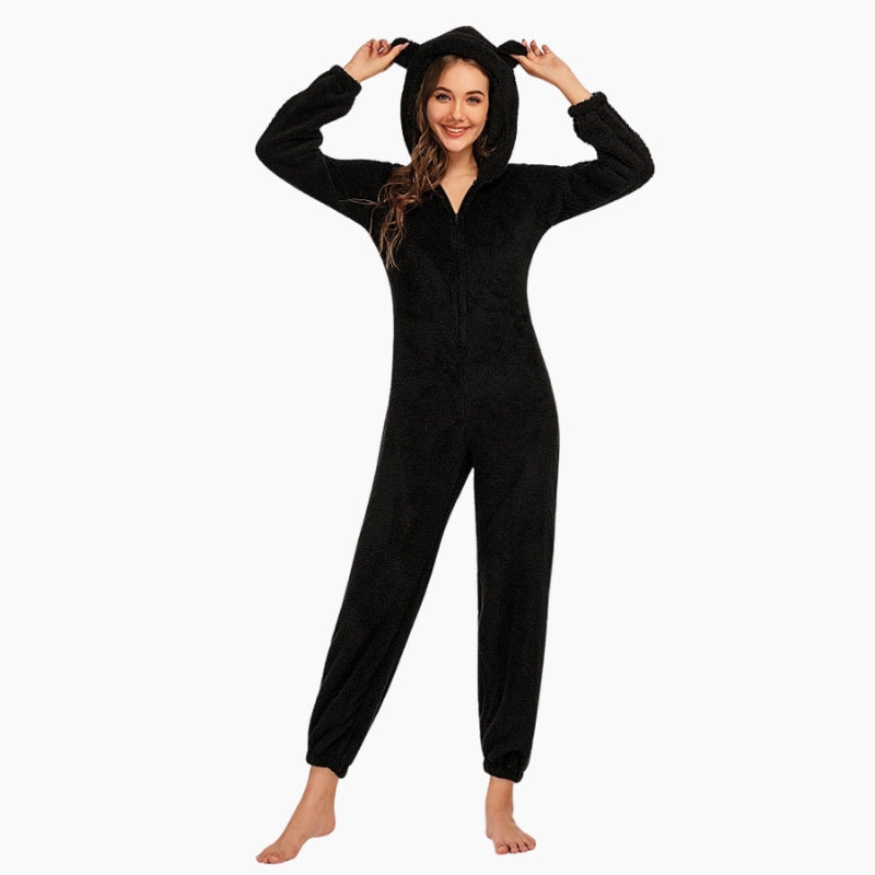 Combi de couleur noire en matière Pilou Pilou pour femme.