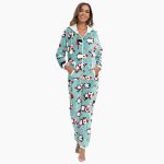 Combinaison de couleur verte à motifs en matière molletonnée pour femme.