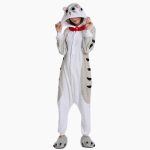 Ce pyjama combinaison chat qui allie le gris et le blanc est équipé d’une capuche avec des petites oreilles et d’une queue à l’arrière pour une ressemblance amusante et réussie. Cette pièce est légèrement élastique au niveau des poignets et des chevilles pour une meilleure tenue.