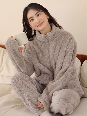 Ensemble Pyjama Femme Polaire Bordeaux « Flocon de Douceur » : Chaleur Douce et Élégance d’Hiver