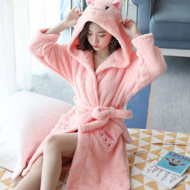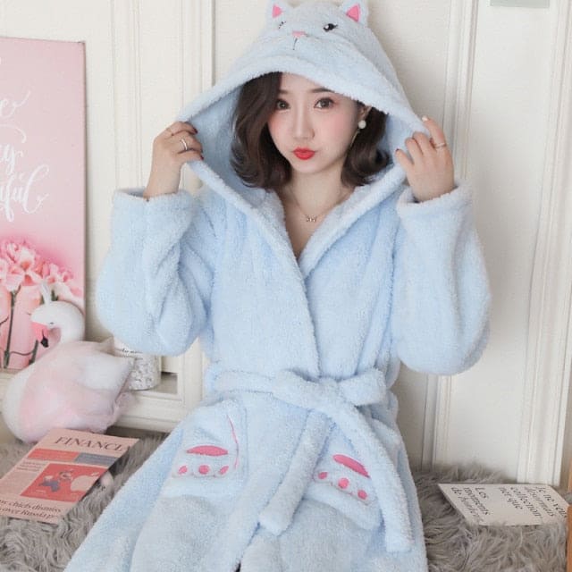 - Peignoir FEMME avec une capuche en forme de chat mignon disponibleen bleu ou en rose