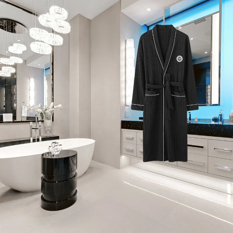 Conçu pour envelopper vos instants de détente d’une aura sophistiquée, ce peignoir incarne le luxe dans la simplicité du noir.