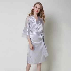 - Soie ou satin : Élégant et léger, souvent utilisé pour des peignoirs plus raffinés.