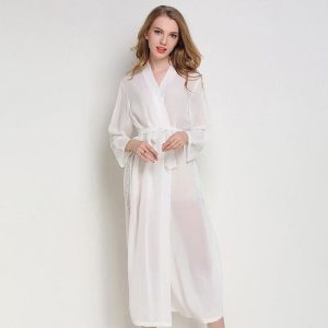 - Soie ou satin : Élégant et léger, souvent utilisé pour des peignoirs plus raffinés.