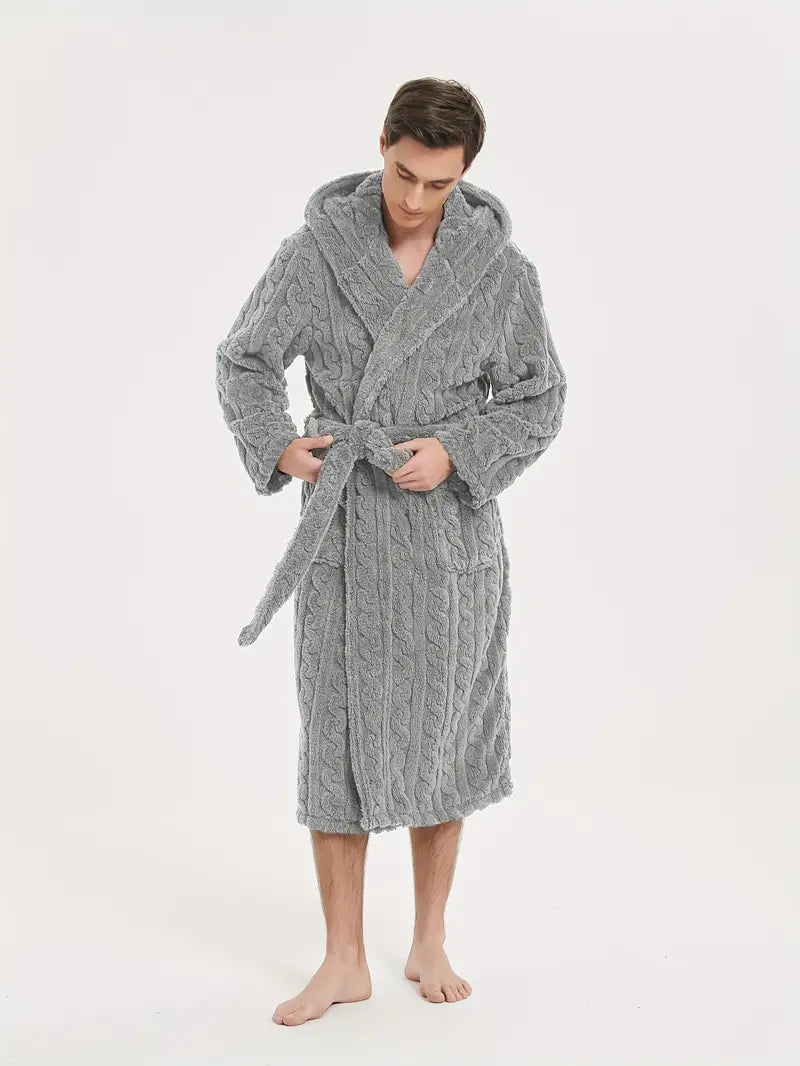 Le peignoir de bain est un vêtement ample, généralement conçu en tissu absorbant tel que le coton ou le velours éponge, permettant de se sécher rapidement tout en restant au chaud. Il est doté d’une ceinture pour le fermer et souvent d’une capuche pour couvrir la tête.