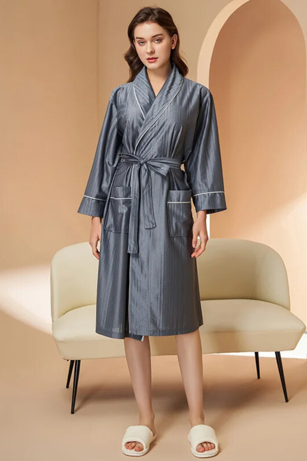 Peignoir Satin Brillant à Rayures : Élégance et Confort au Quotidien