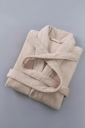 Le peignoir de bain est un vêtement ample, généralement conçu en tissu absorbant tel que le coton ou le velours éponge, permettant de se sécher rapidement tout en restant au chaud. Il est doté d’une ceinture pour le fermer et souvent d’une capuche pour couvrir la tête.