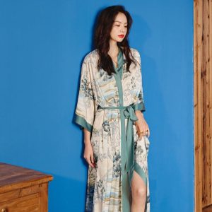 - Soie ou satin : Élégant et léger, souvent utilisé pour des peignoirs plus raffinés.