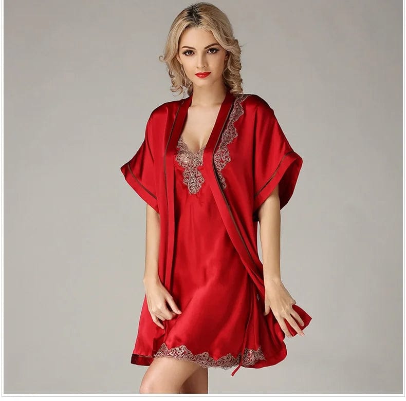 Offrez-vous le luxe ultime avec le peignoir en soie Cherry et sa robe sexy. Cet ensemble d’exception est conçu pour envelopper votre corps dans la douceur et l’élégance de la soie naturelle. Parfait pour vos moments de détente ou une soirée à la maison, il combine confort et raffinement.