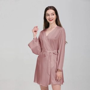 - Soie ou satin : Élégant et léger, souvent utilisé pour des peignoirs plus raffinés.