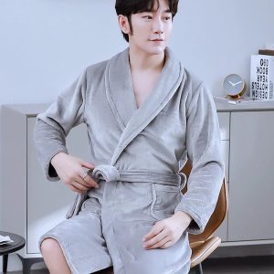 Le peignoir de bain est un vêtement ample, généralement conçu en tissu absorbant tel que le coton ou le velours éponge, permettant de se sécher rapidement tout en restant au chaud. Il est doté d’une ceinture pour le fermer et souvent d’une capuche pour couvrir la tête.