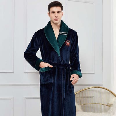 L’hiver est d’habitude froid et rigoureux ! Vous souhaitez au contraire profiter des moments de douceur et d’évasion ? Le peignoir home bleu à col vert sera présent pour prendre soin de vous à la fin de la journée.