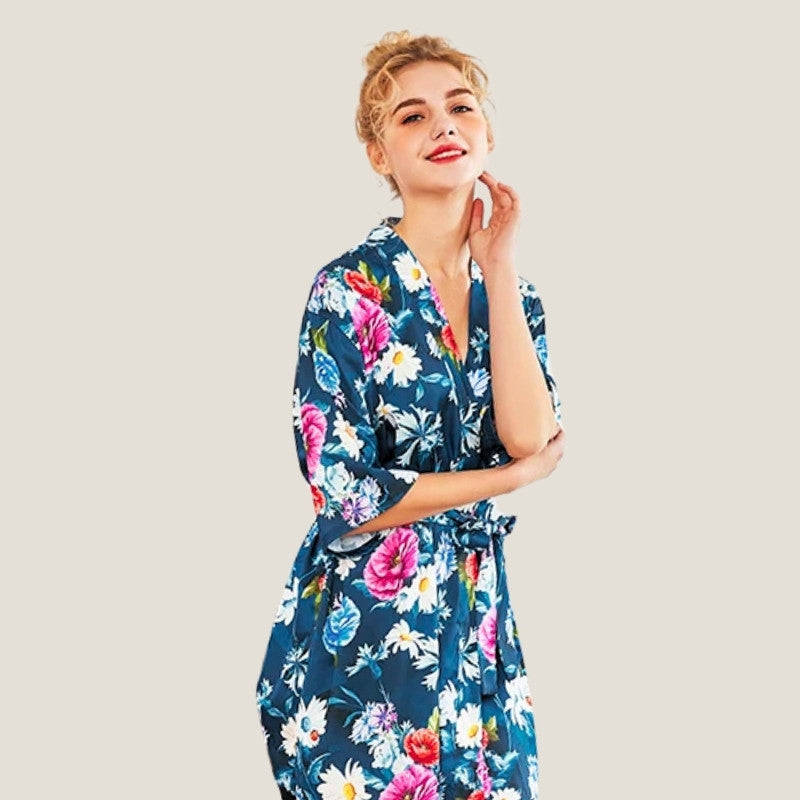 • Coupe kimono : Ce peignoir kimono femme fleuri est conçu avec une coupe kimono pour un ajustement parfait et une liberté de mouvement.