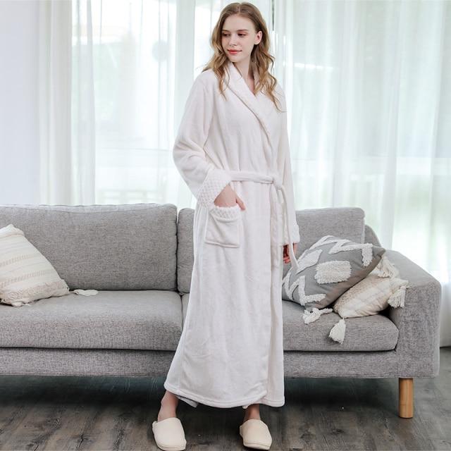 Souhaitez-vous prendre une boisson chaude? Plonger dans un livre passionnant? Visionner un scénario romantique? Le tout assorti d’une bougie aromatisée? L’accessoire qui manque à ce scénario douillet est le peignoir long femme blanc. Avec une collation de fromage et un vin savoureux, vous ressentirez chez vous le sommet du confort afin de vous détendre!