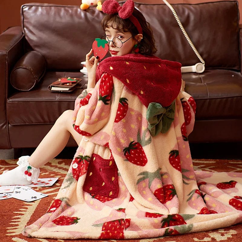 Découvrez le Peignoir Polaire Femme « Fraises » – Balnessa
