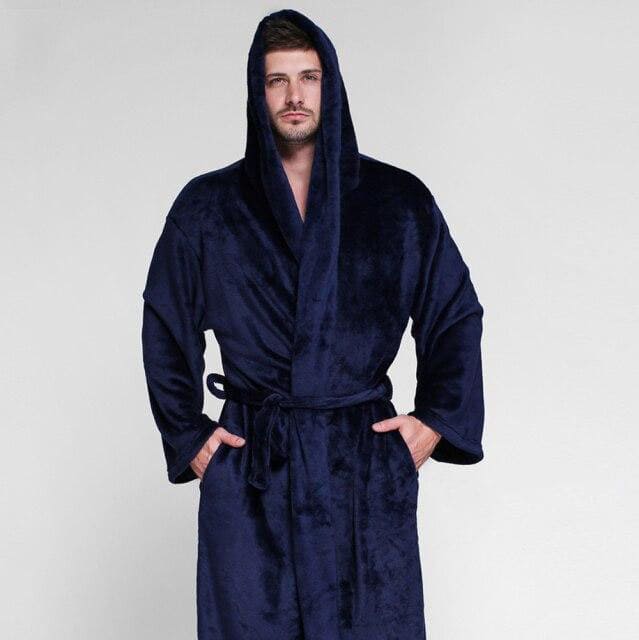 La journée a peut-être été compliquée? Ou bien vous souhaitez simplement un autre moyen de vous reposer, sans vous sentir serré dans vos vêtements? Pour ces deux questions, ce peignoir est adapté aux grand gabarits. A la sortie de la salle de bain, vous marcherez chez vous dans le confort. Avec sa capuche bleue marine, votre tête et vos épaules seront protégés de l’humidité. C’est agréable de sentir sur soi un tissu léger et doux sur la surface de sa peau. Il suffira de se poser dans un coin douillet. Vous trouverez alors le niveau de confort que vous méritez!