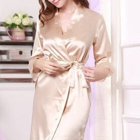 • Soie ou satin : Élégant et léger, souvent utilisé pour des peignoirs plus raffinés.