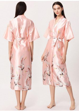 • Soie ou satin : Élégant et léger, souvent utilisé pour des peignoirs plus raffinés.