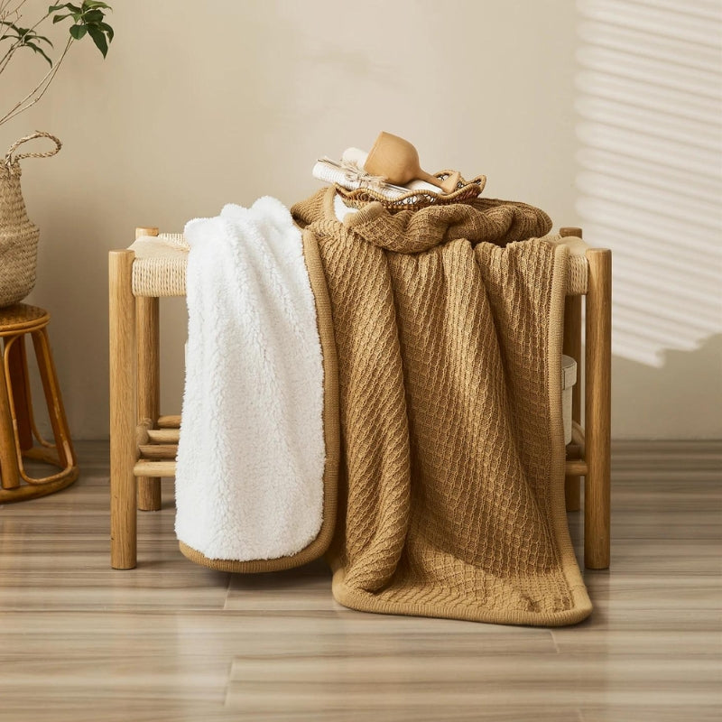 Plaid en fausse fourrure de couleur marron.