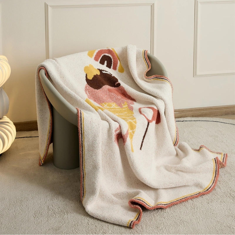 Si vous cherchez un plaid moelleux avec de jolis motifs amusants vous êtes au bon endroit. Ce modèle qui est entre le blanc cassé et la couleur crème possède des petits motifs amusants avec sa petite glace à la fraise.