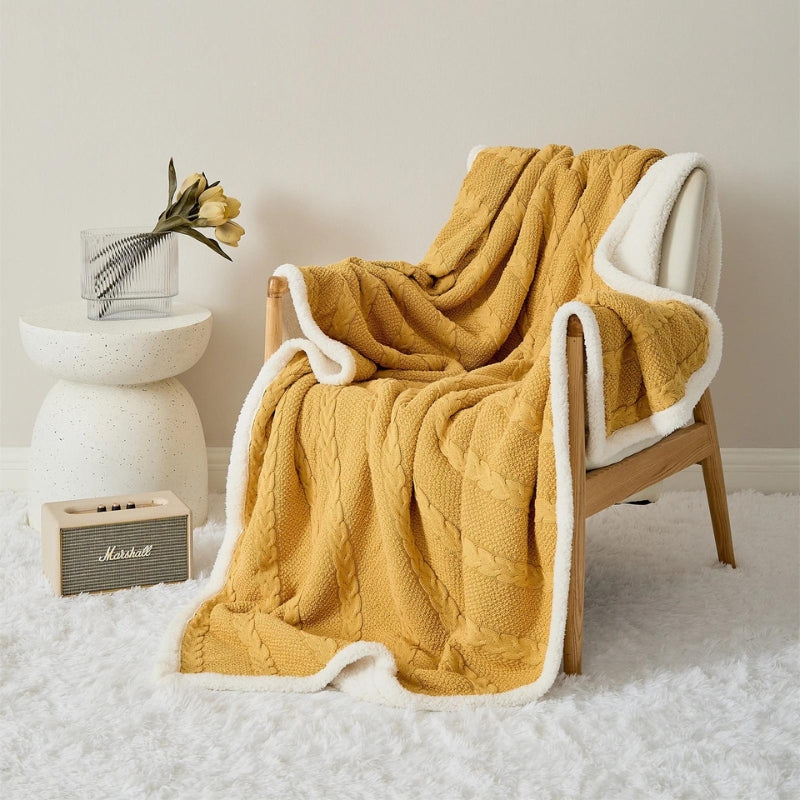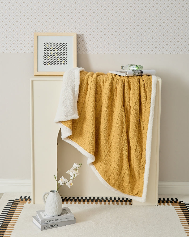 Plaid jaune en matière moumoute.