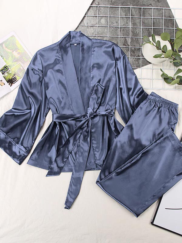 Optez pour le pyjama en satin « Mystère de Nuit » pour un sommeil à la fois confortable et raffiné. Composé d’une robe de chambre à manches longues et d’un pantalon assorti, cet ensemble en satin de qualité supérieure allie style et bien-être.